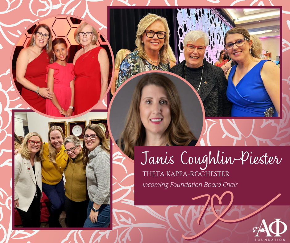As we enter the final stretch of our countdown, we are thrilled to feature a sister who is preparing to take the helm of our organization: Janis Coughlin-Piester (Theta Kappa–Rochester).