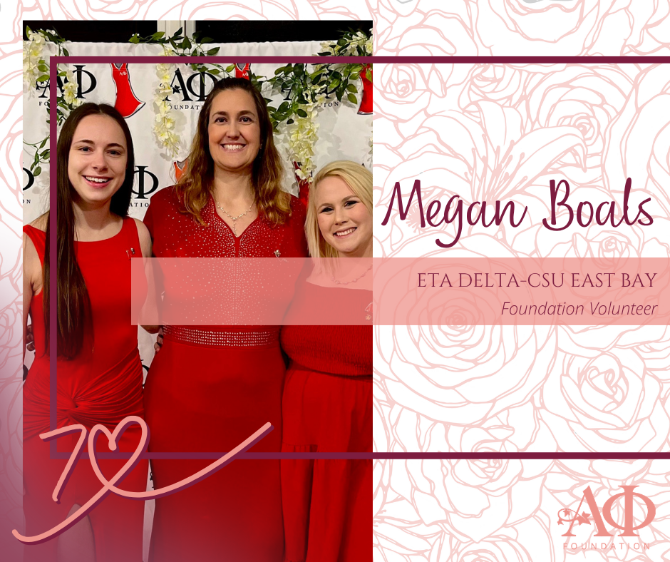 As we continue Volunteer Appreciation Month, we are highlighting sisters who use their professional expertise and personal foresight to advance our mission. Today, we’re featuring Megan Boals (Eta Delta-CSU East Bay), a dedicated volunteer and Clara Bradley Burdette Society member.With a background in Public Health, Megan brings a vital perspective to the Foundation as a Medical Reader. Her expertise allows her to make informed decisions on how we support life-saving heart health grants each year.Professional Passion Meets PhilanthropyFor Megan, volunteering is about more than just giving time—it’s about ensuring the future of our sisterhood and the health of women everywhere.“Having a Public Health background allows me to make an informed decision on how we support women’s heart health,” Megan shares.A Lasting LegacyBeyond her active volunteer roles, Megan has secured the future of Alpha Phi as a member of the Clara Bradley Burdette Society. By including the Foundation in her estate plans, she is ensuring that the mentorship, leadership, and scholarship she values today will be available for sisters 70 years from now and beyond.Megan’s “Vibrant Legacy” is one of both immediate action and long-term vision, proving that when we align our skills and our hearts, we create a stronger community for the members of today and tomorrow. -