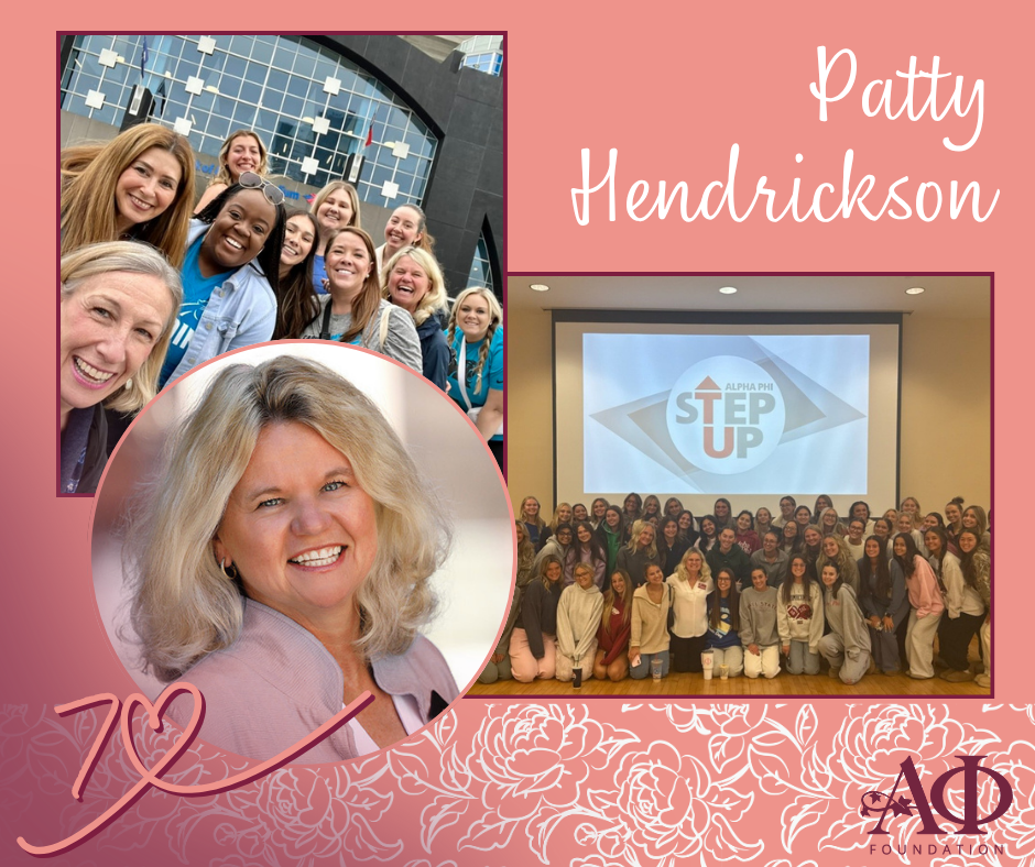 A professional speaker and leadership expert, Patty brings her dynamic energy to the Foundation as a volunteer for the League of Coaches. This Foundation-funded program is a bold, “cutting-edge” initiative designed to engage collegiate members in honest conversations about personal responsibility and wellbeing.Proactive Practices, Not ProhibitionFor Patty, being a coach isn’t about setting rules—it’s about empowering sisters to make informed, courageous choices.“My favorite part of volunteering for the League of Coaches is being a part of a cutting-edge program that Alpha Phi is boldly featuring,” Patty shares. “We’re helping women stay safe and elevating their personal responsibilities for themselves and others. It’s definitely not prohibition – it’s proactive practices!”Leading by ExamplePatty’s “Vibrant Legacy” is one of bold courage and continuous learning. By volunteering her time to coach the next generation, she ensures that our founders’ intentions remain a living, breathing reality. She proves that when we provide sisters with the right tools and a supportive coach, they don’t just become better members—they become better versions of themselves.To Patty, and all our coaches who help our sisters navigate the complexities of college life with vision and vitality: Thank you for leading with heart! -