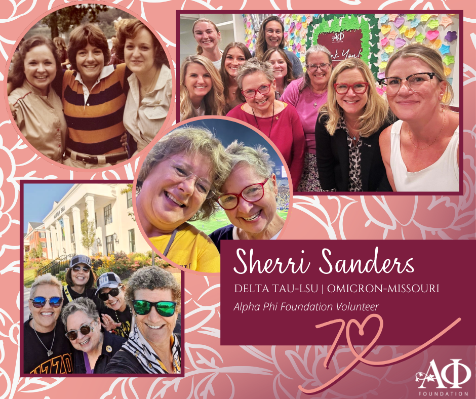 Welcome to the first of April! As we kick off Volunteer Appreciation Month, we are turning our spotlight toward the women who are the true heartbeat of Alpha Phi Foundation. Today, we’re celebrating Sherri Sanders, (Delta Tau-LSU, Omicron-Missouri) a sister whose “Vibrant Legacy” is defined by her incredible willingness to show up whenever and wherever she is needed.Sherri’s dedication spans every level of our mission. If you’ve ever visited the Executive Office in Denver during a major event, you’ve likely seen her hands-on spirit in action, graciously volunteering her time to assist with donor events such as Day of Giving. But her impact also reaches far beyond the office walls through her thoughtful work as a Scholarship Reader.Sherri believes the “Vision & Vitality” of Alpha Phi’s future is most visible in the dreams of our collegiate sisters. As a Scholarship Reader, she dives deep into the applications of young women who are balancing rigorous academics, leadership roles, and community service.Through this vital role, Sherri helps ensure that the Foundation’s resources go to the sisters who will become tomorrow’s pioneers. She doesn’t just read essays; she listens to the voices of women who are determined to change the world, and she uses her expertise to help provide the financial freedom they need to succeed.“I am excited about the impact we can make when we work together,” Sherri shares. “I love seeing the quality of our members and the high-achieving women they are becoming.”Sherri’s commitment reminds us that there is no single way to give back and her commitment to Alpha Phi stems from a simple, powerful belief: our sisterhood is a lifelong journey of mutual support and every act of service is a “thoughtful investment” in our collective success.To Sherri, and to all our volunteers who give so graciously of their time, talent, and treasure: Thank you. You are the reason the path forward stays illuminated for every Alpha Phi. -